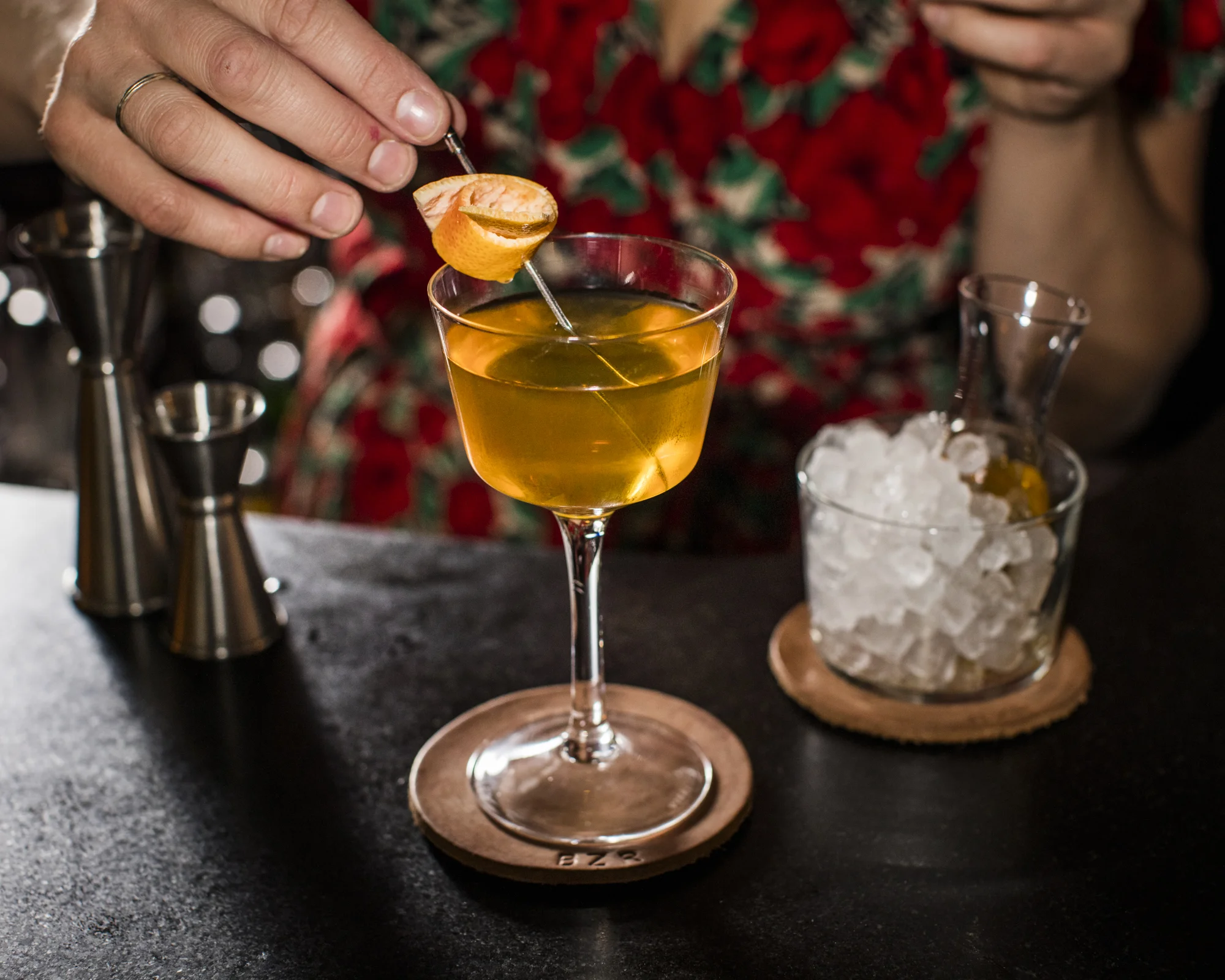 BANZARBAR is a twenty-seat cocktail bar on the second floor of Freemans Restaurant. To access the bar, travel to Freemans Alley off of Rivington Street between the Bowery and Chrystie, proceed to the end of the alley, then enter Freemans Restaurant through the blue door. The Maître D’ will escort you up to the second floor to BANZARBAR.